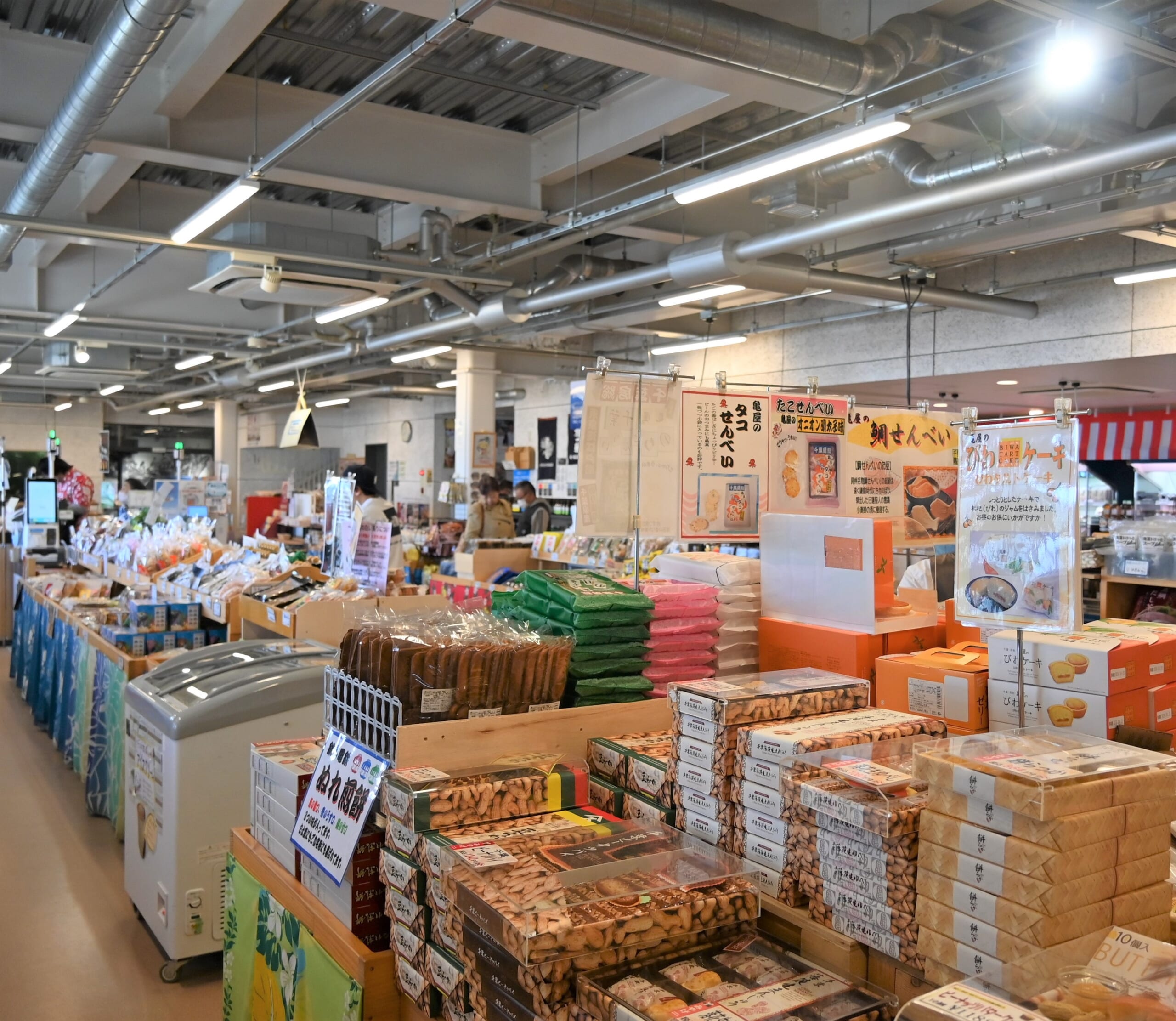 直売所もあり、片貝漁港で水揚げされた新鮮ないわしやハマグリなど、九十九里名産の魚介類や地元の農産物が販売されています。