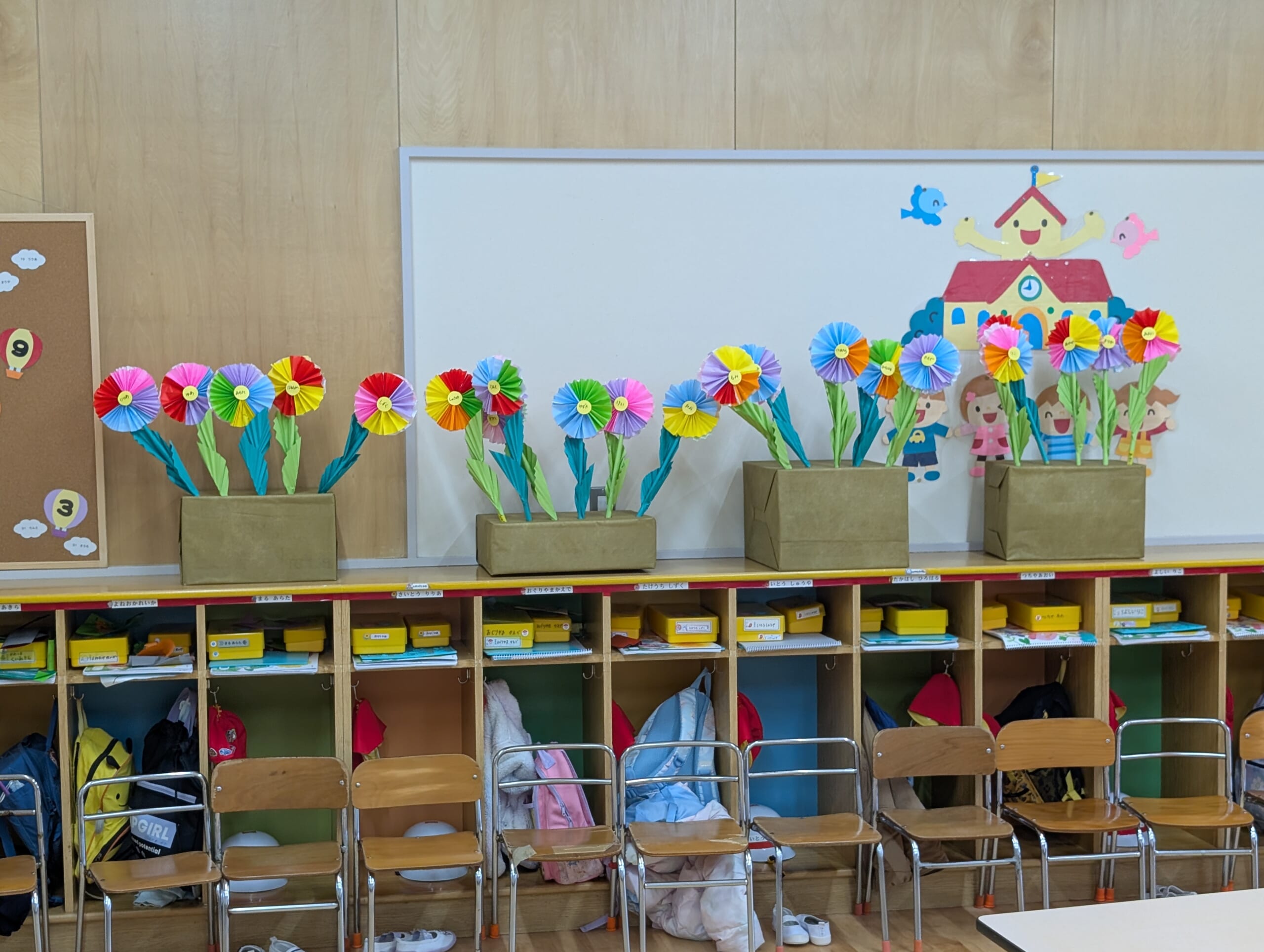 教室には皆が作った工作が飾られていました。