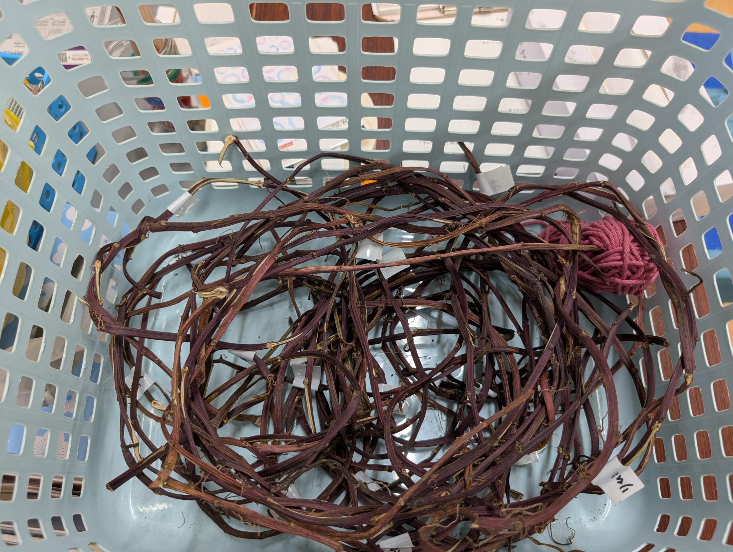 次はこちらの芋づるでクリスマスリースを作るそうです。