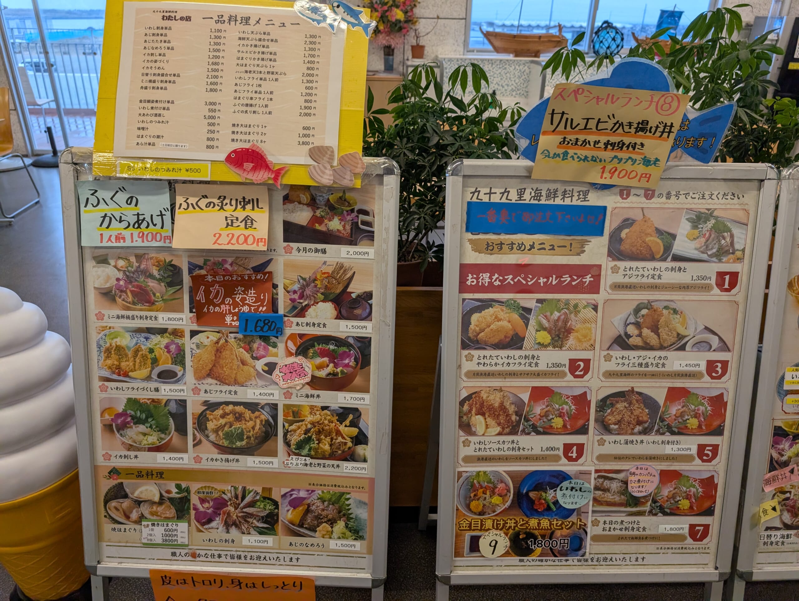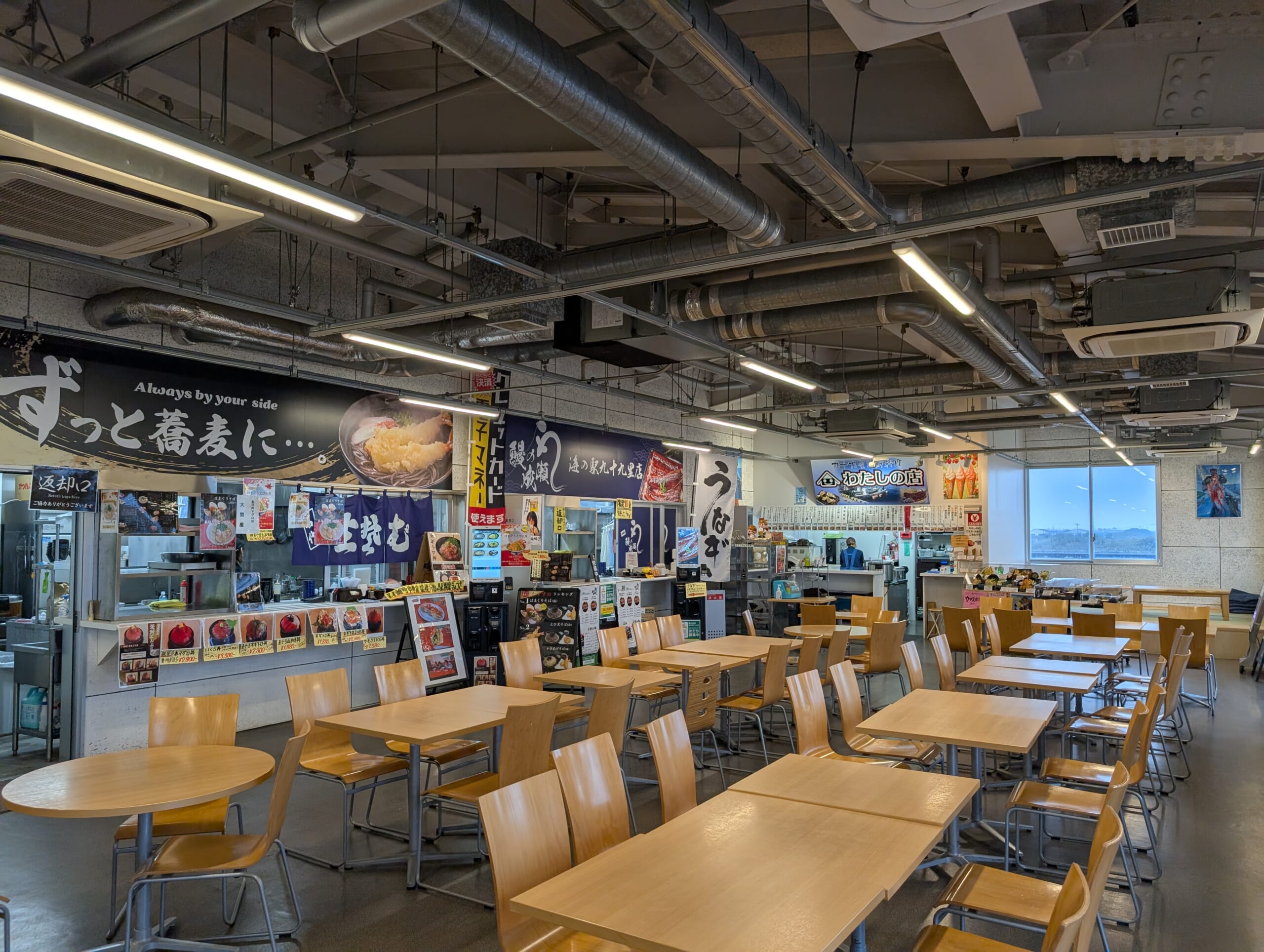 2階にはフードコートがあり、鮮度抜群のハマグリやいわしを使った九十九里の郷土料理や、定食、丼ものなどを味わうことができます。